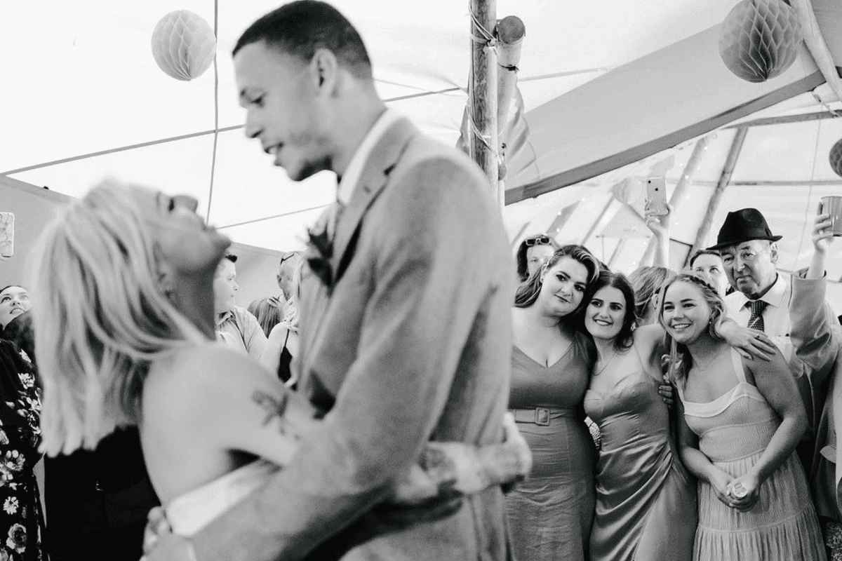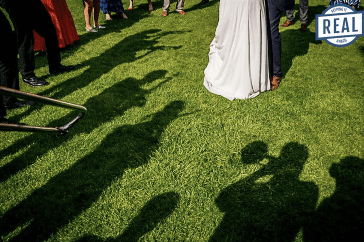 What a killer frame from Andy. He made perfect use of the shadows of the band to create an abstract frame around the bride and groom. We are encouraged to fill in the gaps ourselves. We know there's a band, a circle of guests and the bride and groom in the centre. This could've been a much simpler composition but Andy found a really creative technique to tell the same story in a different way.