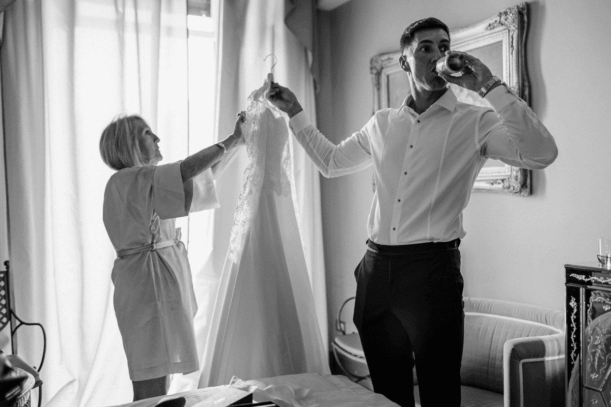 Scott has done an excellent job looking for the alternative composition. The main story is happening in the foreground, the couple dancing, but Scott chose to focus on the guests reactions. There's also some lovely shapes and lines keeping this composition interesting, and I really like Scott's choice of black and white to help us focus on the shapes.