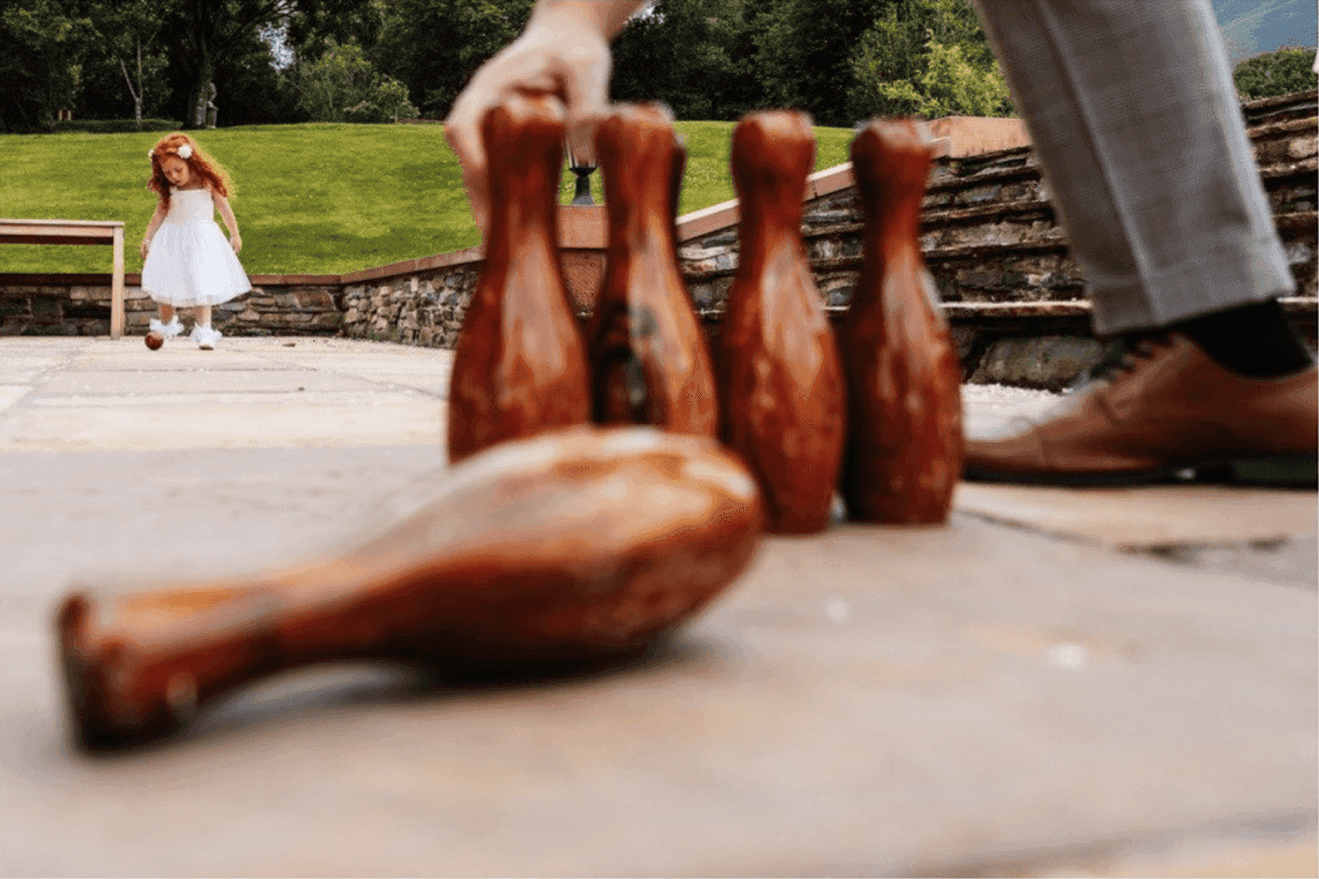 Chelsea consistently finds these fun alternative angles to capture moments, and this is a perfect example of that! Getting down low and shooting through the skittles makes this image pop. I also love the skittle in the foreground is on it's side leading us nicely into the image, and the balance between the colour of the skittles and the girls hair is perfect!