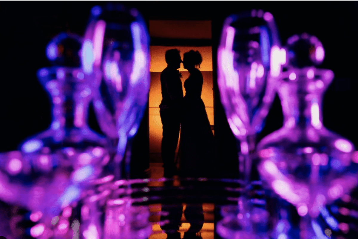 I love the contrasting colours in Daniel's composition. Shooting through the glassware perfectly frames the couple, combined with a killer silhouette.